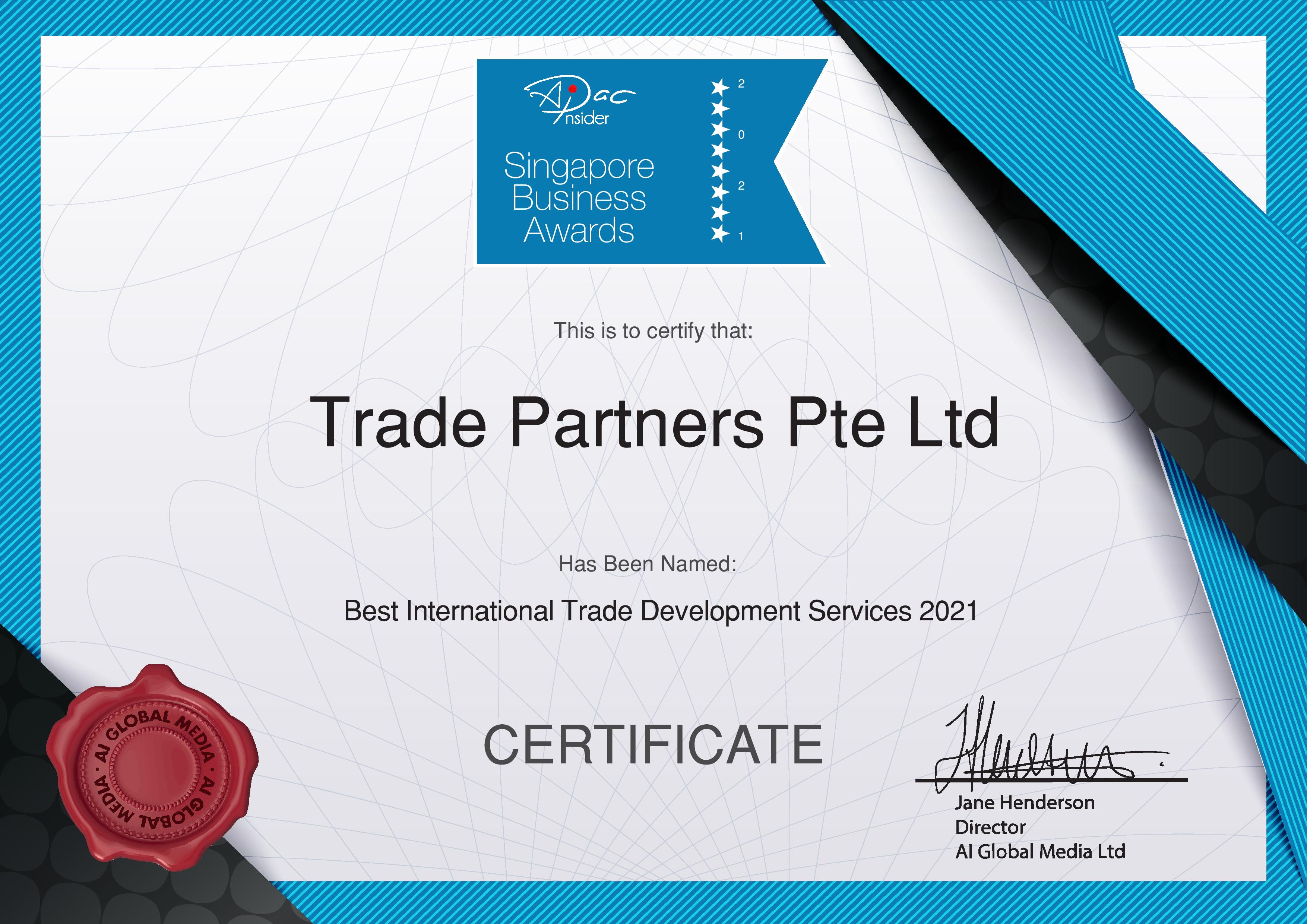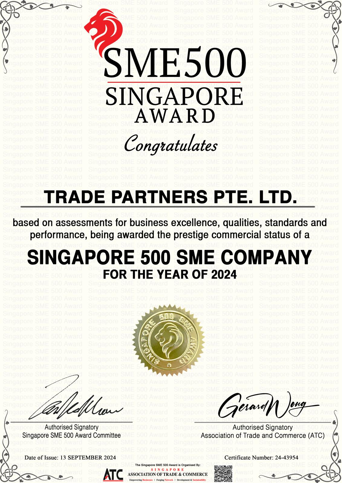 SME 500 Singapore Awards Certificate